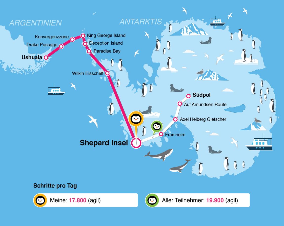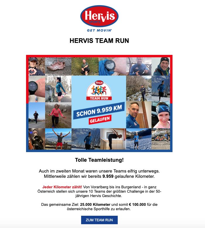 - Große Kontinuität. Über die gesamte Zeit bleibt die Motivation der Teilnehmer gleichmäßig hoch. In unseren Schrittzähl-Wettbewerben bleiben mindestens 98 % der Teilnehmer bis zum Ende dabei. Die restlichen 2 % steigen durch Krankheit aus.