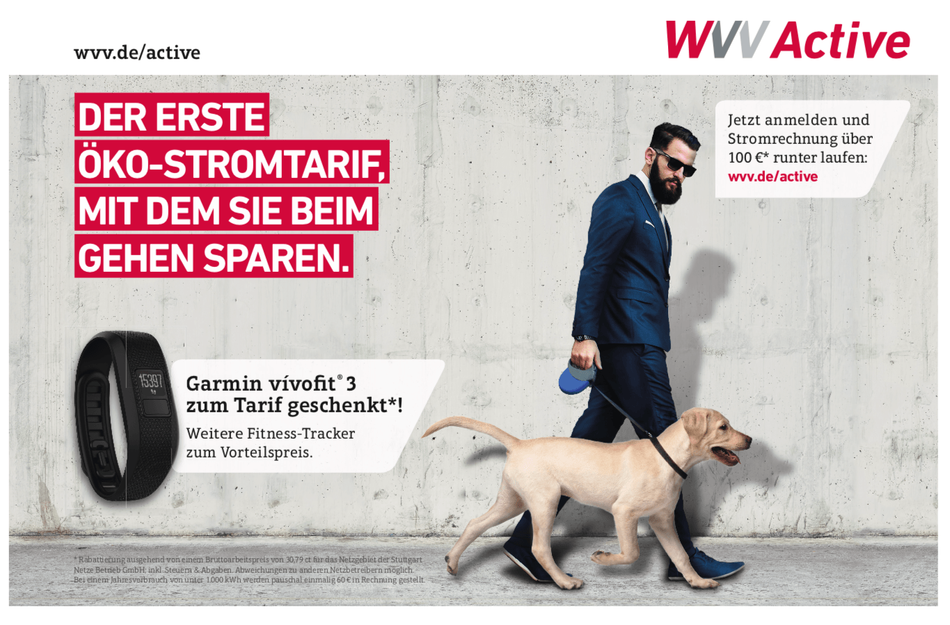 Der deutsche Strommarkt ist so umkämpft wie kaum ein zweiter in Europa. Um Verbraucher zum Wechseln zu bewegen, geht die Würzburger Versor- gungs- und Verkehrs-GmbH (WVV) deshalb ganz neue Wege – im wahrsten Sinne des Wortes. Jeder Kunde, der täglich mindestens 5000 Schritte läuft, bekommt eine Kilowattstunde Strom geschenkt. Über 100 Euro lassen sich so jedes Jahr sparen. WVV Active heißt der außergewöhnliche Öko- Stromtarif.